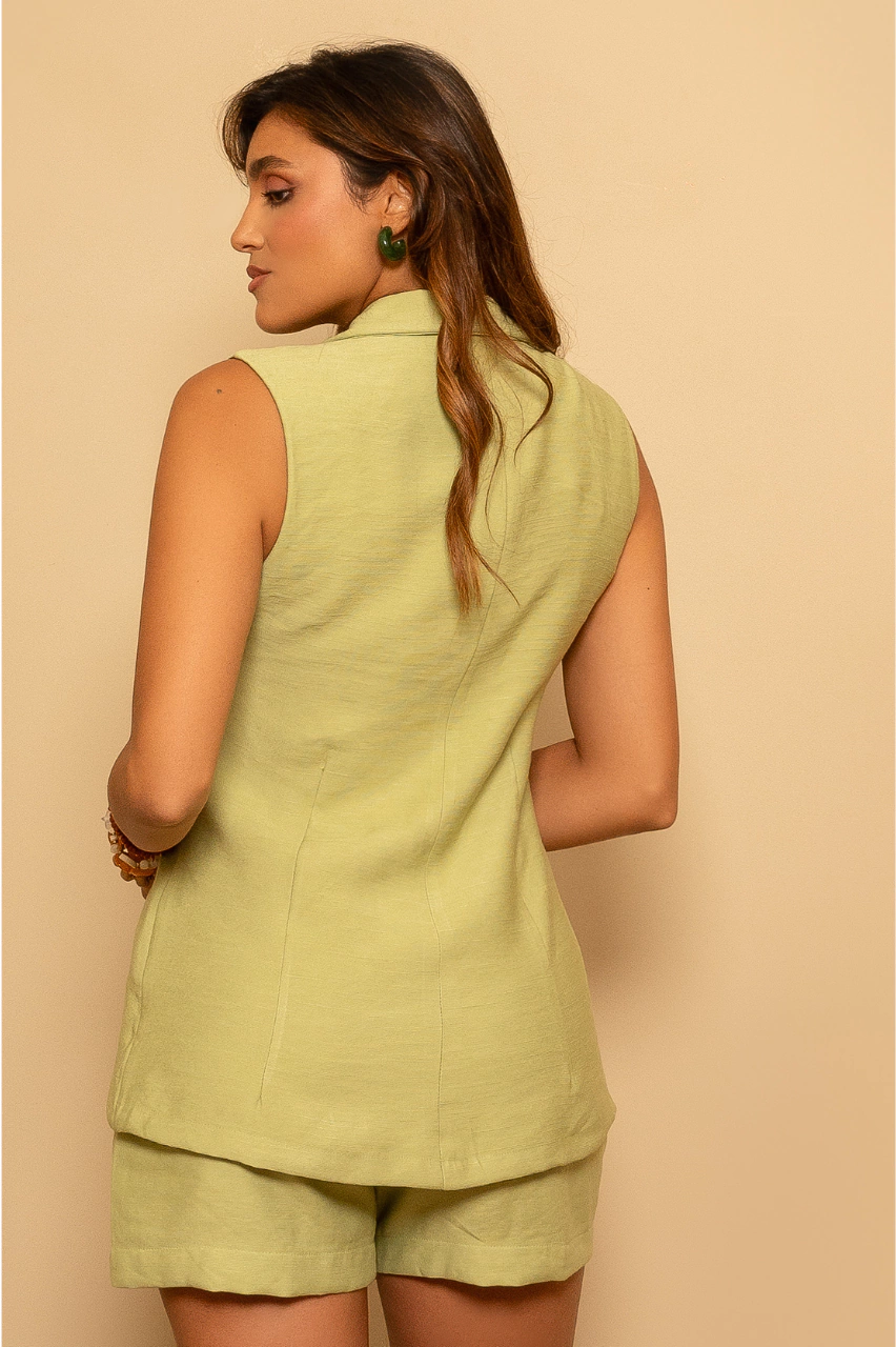 Elegância e sofisticação definem este colete estruturado. Com cintura ajustada e bolsos embutidos, a peça alia funcionalidade ao design refinado. A faixa acompanha o colete, permitindo amarrações que valorizam a silhueta e conferem um toque contemporâneo a qualquer look.