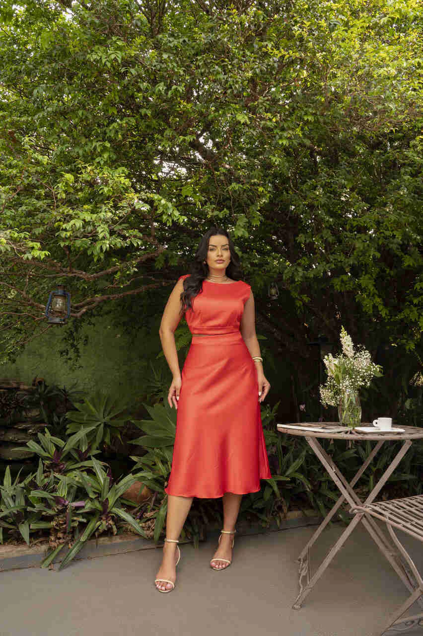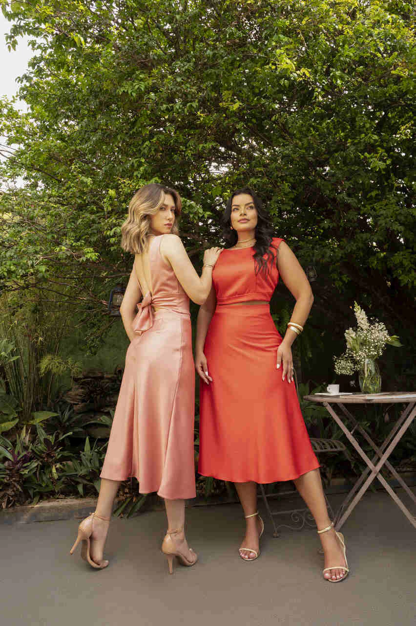 Elegância e movimento em uma só peça. A Saia Acetinada é confeccionada em crepe acetinado de brilho sutil, que confere leveza e sofisticação ao visual. Seu corte em viés proporciona um caimento impecável, valorizando a silhueta com fluidez e delicadeza. O comprimento mídi reforça sua versatilidade, transitando com facilidade entre produções casuais e elegantes. Uma peça essencial para composições refinadas e cheias de estilo.